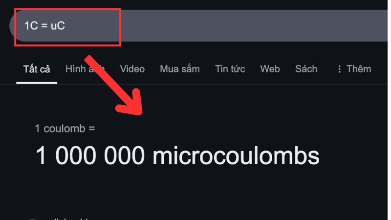 Ví dụ: Muốn đổi 1 C sang uC thì gõ “1C = uC” và nhấn Enter.