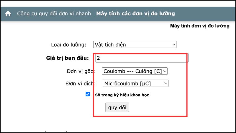 Quy đổi từ Coulomb sang Microcoulomb rất đơn giản: