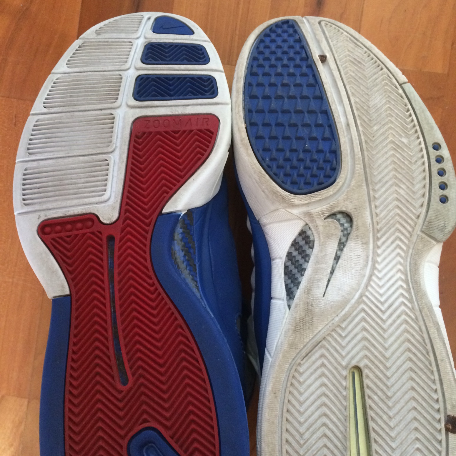 Both shoes have the exact same set up of targeted Zoom in the heel and forefoot but they feel totally different. The 2k4 feels muted while the 2k5 feels lively and bouncy the way we all like it to feel. An old Professor K review says it’s due to the Free inspired outsole but I think it must be due to how much foam they put around the Zoom or they used larger air bags. Regardless, the difference is noticeable.