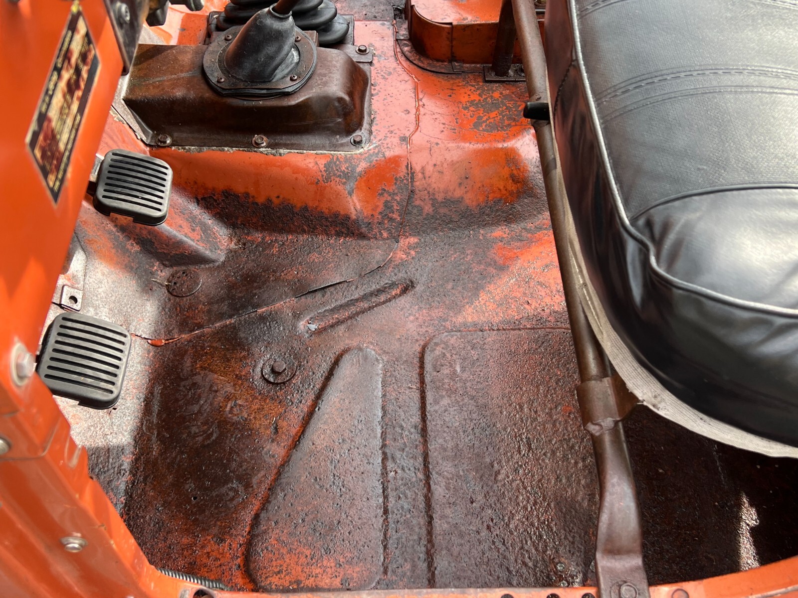The seller believes that most of the Code 600 Copper paint cloaking this Jeep is original. They acknowledge some touch-ups and patchiness in spots, but it retains a healthy shine. There are minor dings and imperfections, but none require immediate attention. It looks like someone recently restored the wheels because they are in as-new condition. Surface corrosion is visible in various locations, including heavy pitting on the floors. There is also penetrating rust requiring attention, including in the toolbox and at least one body mount. The seller supplies this excellent YouTube video revealing many faults and flaws. One additional item requiring attention is the windshield. Although it isn’t cracked, it is extremely cloudy around the edges. However, I had no trouble locating a replacement windshield and seal for under $200.