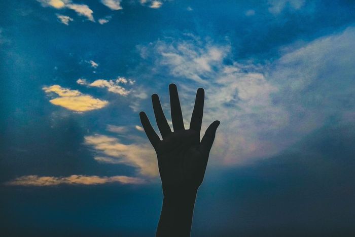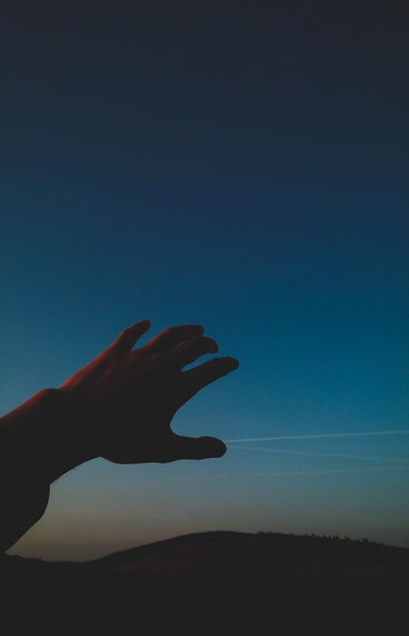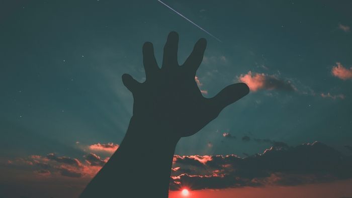 Ảnh người giơ tay trên bầu trời, khắc họa khoảnh khắc chạm vào không gian vô tận