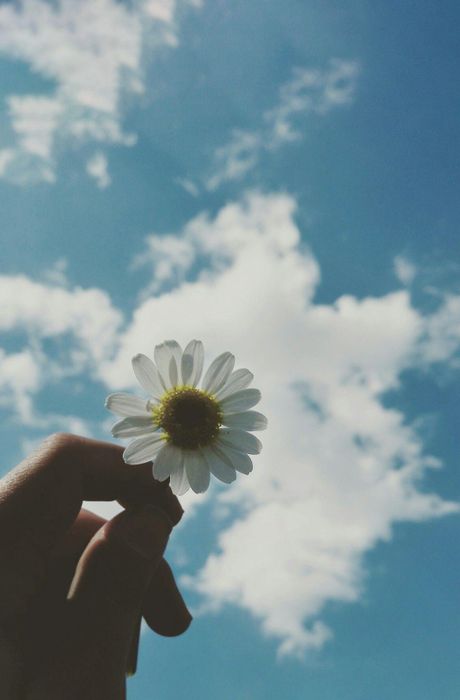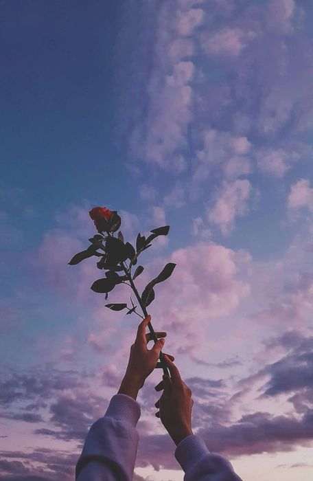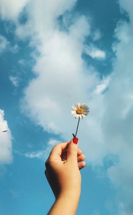 Ảnh tay cầm hoa và bầu trời, sự kết hợp tinh tế giữa thiên nhiên và con người