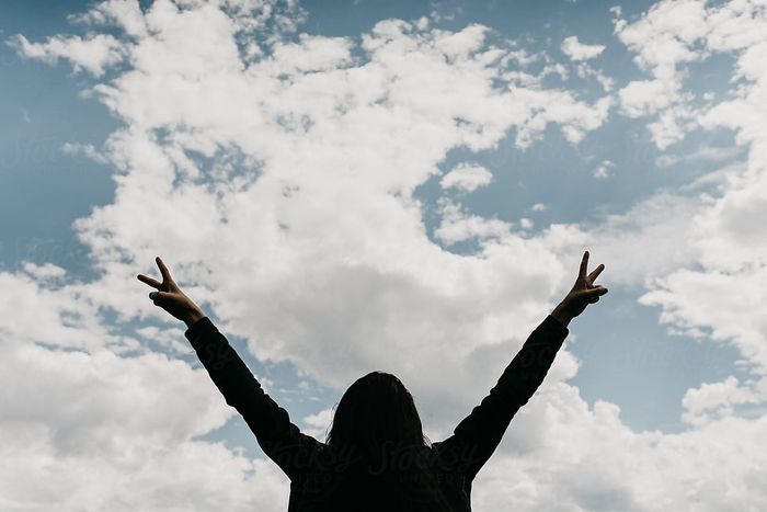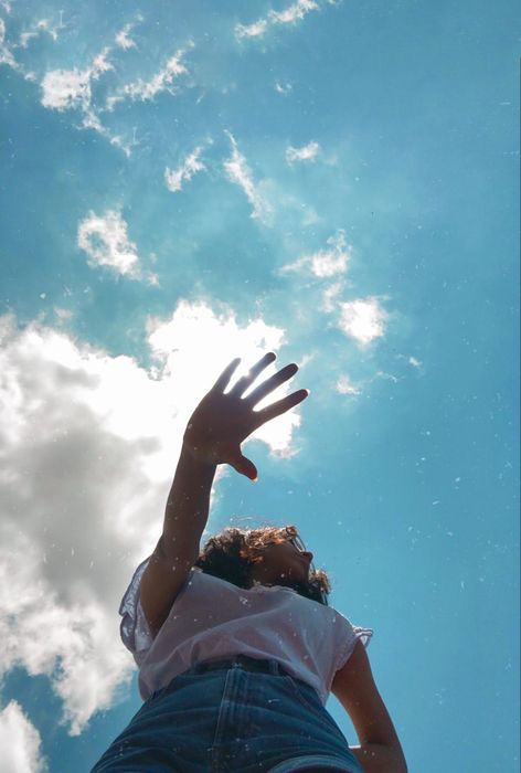 Hình ảnh giơ tay lên bầu trời, khắc họa khoảnh khắc chạm vào không gian bao la