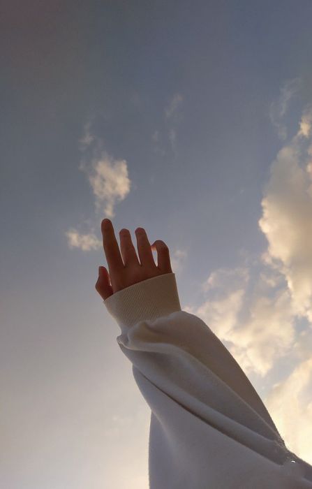 Ảnh tay và bầu trời, gợi lên sự hòa quyện giữa nhỏ bé và bao la
