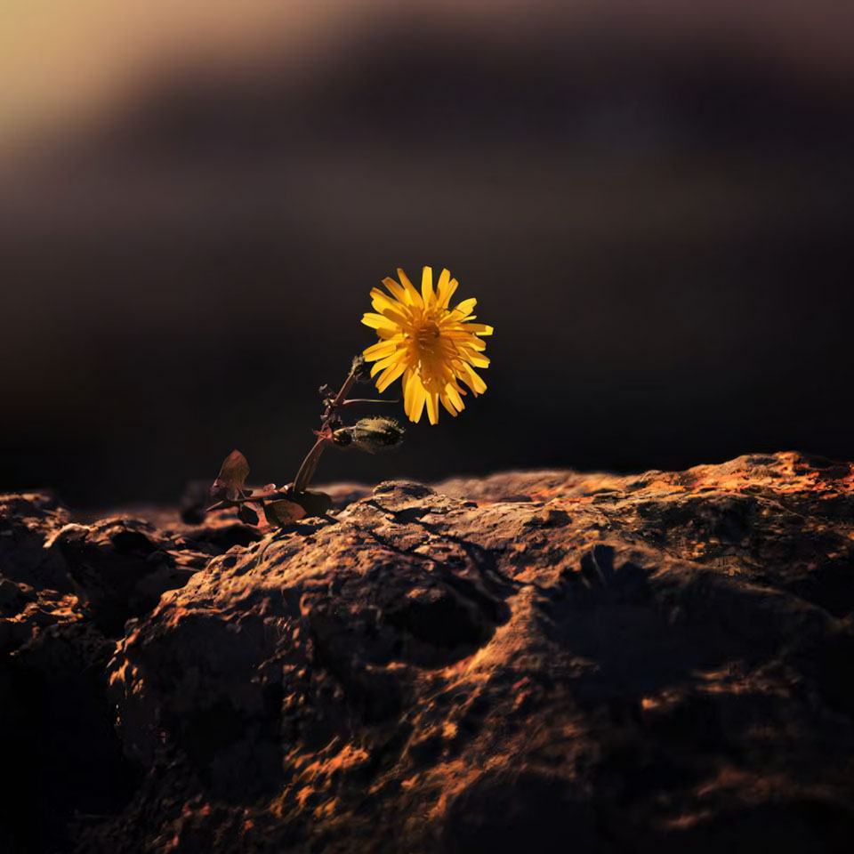 Những bức ảnh hoa buồn cô đơn thường là ảnh ngang, với bông hoa đơn độc lặng lẽ tồn tại giữa khung cảnh rộng lớn. Đó có thể là nhành hoa bị gió thổi nghiêng, bông hoa nằm trên đất lạnh, hay cánh hoa giữa khoảng trống. Ảnh hoa cô đơn như lời nhắc rằng ai cũng có lúc thấy mình nhỏ bé và lạc lõng giữa thế giới.