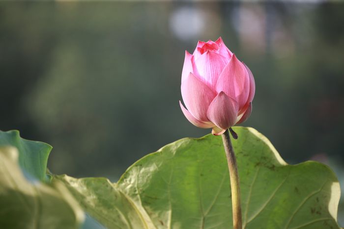 Khoảnh khắc hoa sen chớm nở, tinh khôi và dịu dàng