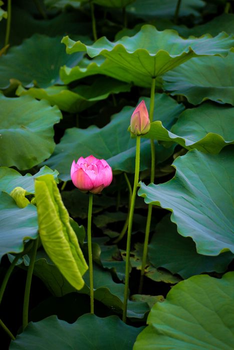 Hình ảnh đầm sen chưa nở, mang vẻ đẹp tiềm ẩn và đầy hứa hẹn