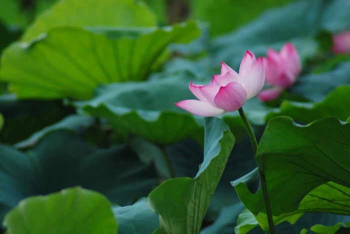 Hình ảnh hoa sen nở giữa đầm xanh, tạo nên khung cảnh thanh bình