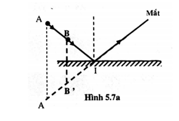 Trong hình vẽ trên, ta thấy ảo ảnh S’ vì các tia phản xạ lọt vào mắt có đường kéo dài đi qua điểm S’.