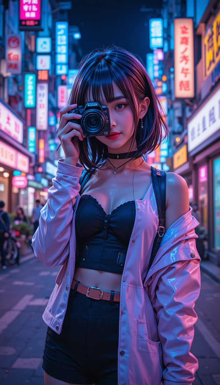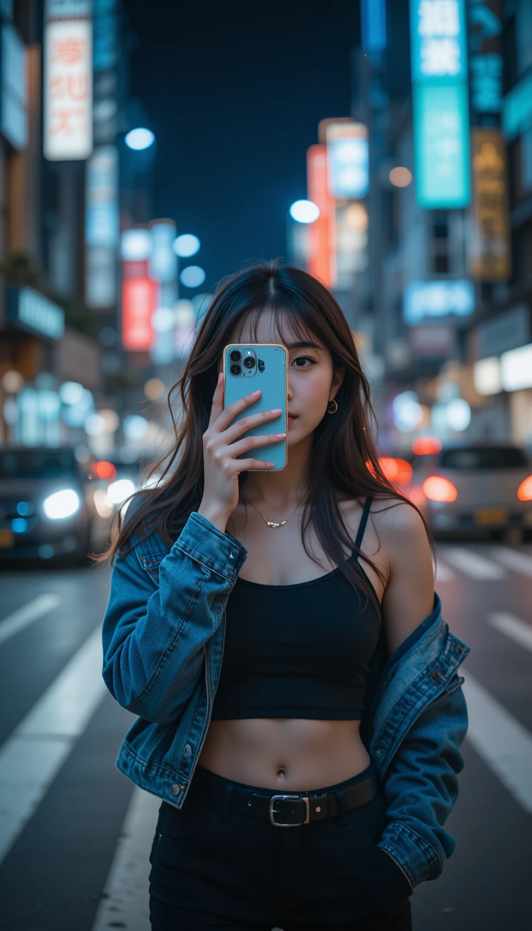 Phong cách đường phố mang hơi hướng hiện đại, tự do và bí ẩn. Một cô gái đi giữa phố, che mặt bằng điện thoại hoặc nón lưỡi trai, ánh đèn phản chiếu lung linh – chính là biểu tượng của sự “cool” và khác biệt.