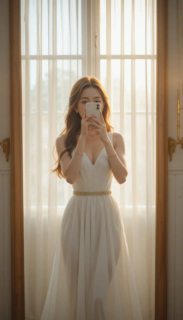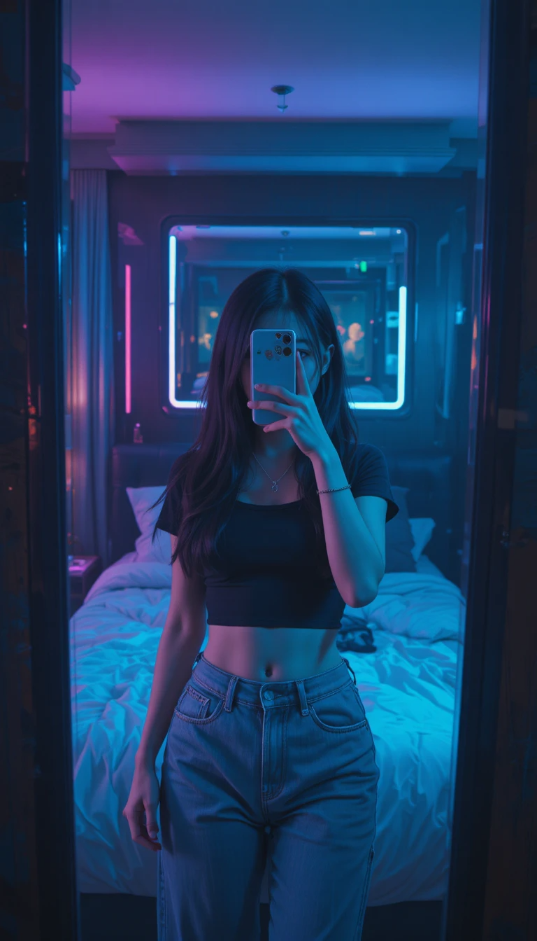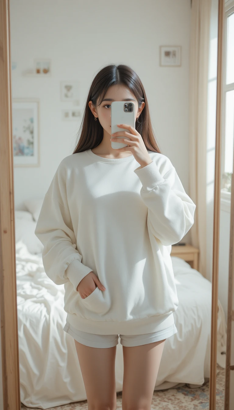 Đây là trend “bất tử” trên TikTok và Pinterest. Chỉ cần một tấm gương, chiếc điện thoại và ánh sáng nhẹ, bạn đã có thể tạo nên bức ảnh nghệ thuật, vừa giản dị vừa sang. Các kiểu ảnh này được ưa chuộng vì giữ trọn sự riêng tư nhưng vẫn khoe được outfit và phong cách sống.