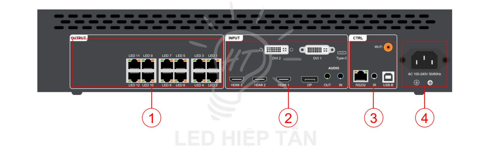 Khả năng quản lý 7.8 triệu pixels, ngang tối đa 16000 pixels, cao tối đa 4000 pixels Tích hợp card phát Tích hợp tính năng card phát với 12 cổng mạng Gigabit đầu ra ĐIện áp hoạt động 100VAC – 240VAC 50/60Hz Công suất tiêu thụ 50W Tỷ lệ lỗi 0%