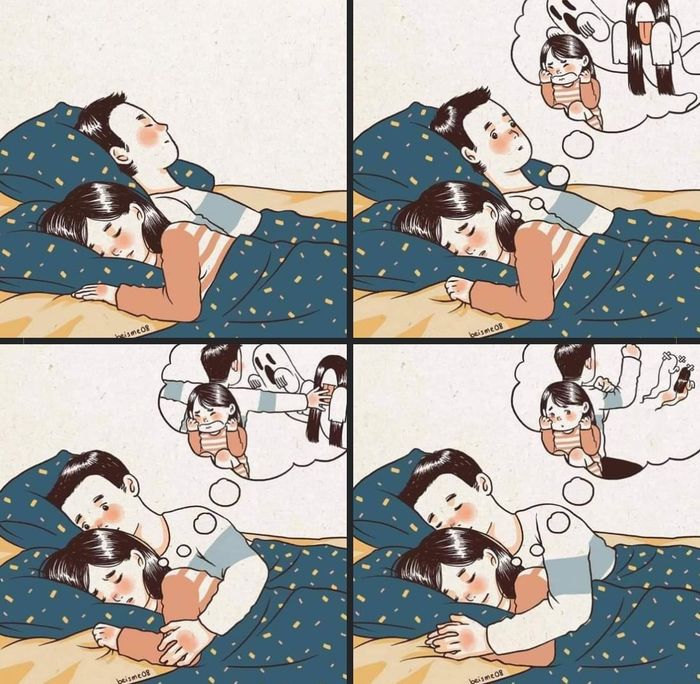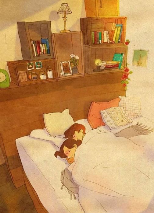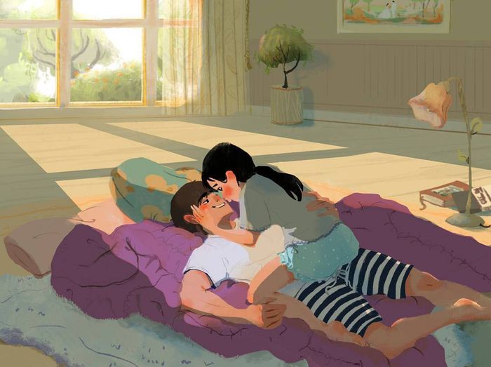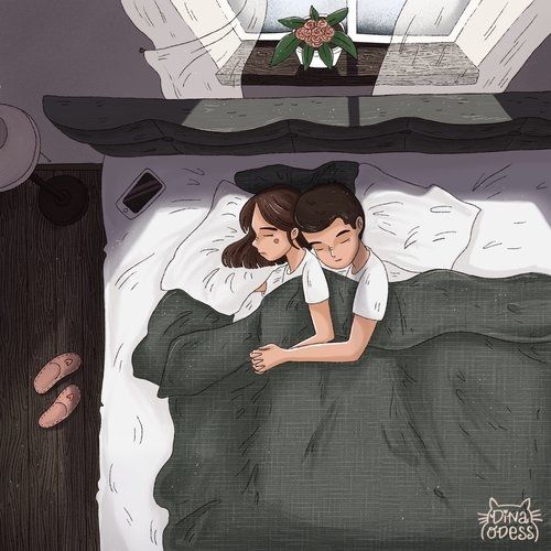 Tranh vẽ ôm người yêu ngủ đẹp và đầy cảm xúc