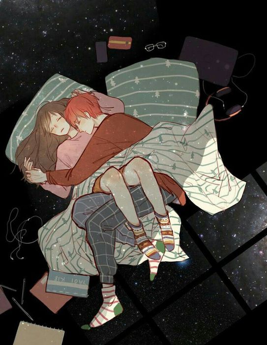 Ảnh Anime ôm người yêu ngủ lãng mạn và ngọt ngào
