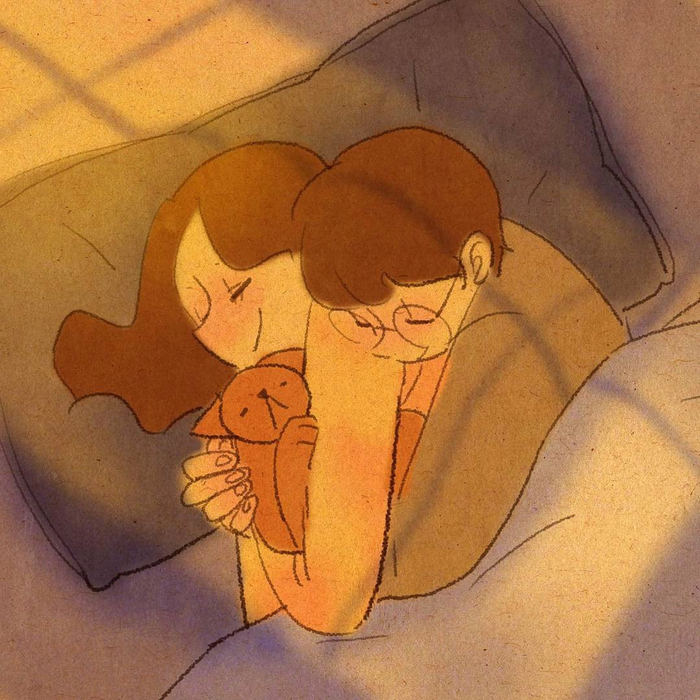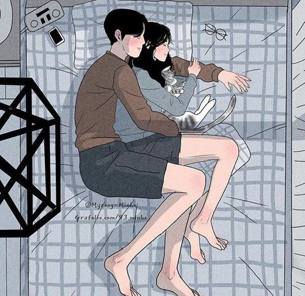 Ảnh ôm người yêu ngủ hoạt hình đẹp và lãng mạn