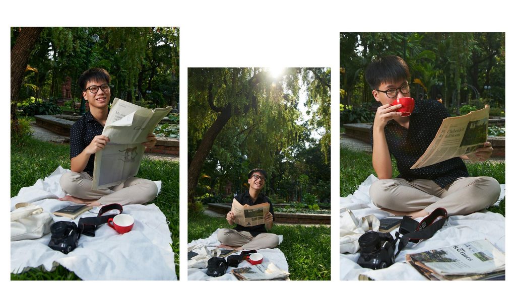 “Mình nhớ rõ cái lần đầu tiên sử dụng chiếc ảnh mới, và cảm giác sung sướng khi thành phẩm chụp ra thật “đáng đồng bát gạo”. Bức ảnh này có màu rất sáng, cái ánh sáng tự nhiên hiếm hoi mới bắt kịp. Nền xanh của cây cối trong tiệm cà phê “Nhà Thường Xanh” đem đến màu sắc và bối cảnh rất “mượt” và sinh động cho bức hình. Những chậu cây được chiếc lens 50mm xoá phông rất uyển chuyển, và ánh sáng ban ngày xuất sắc khiến cho việc chỉnh ảnh của mình nhàn hơn rất nhiều!”