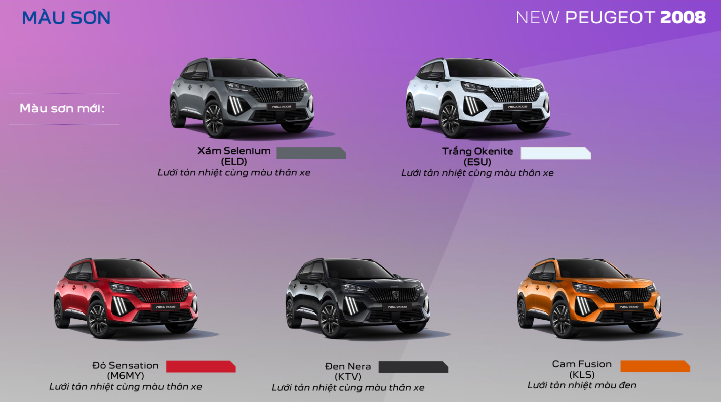 New Peugeot 2008 2025 gồm 5 màu: