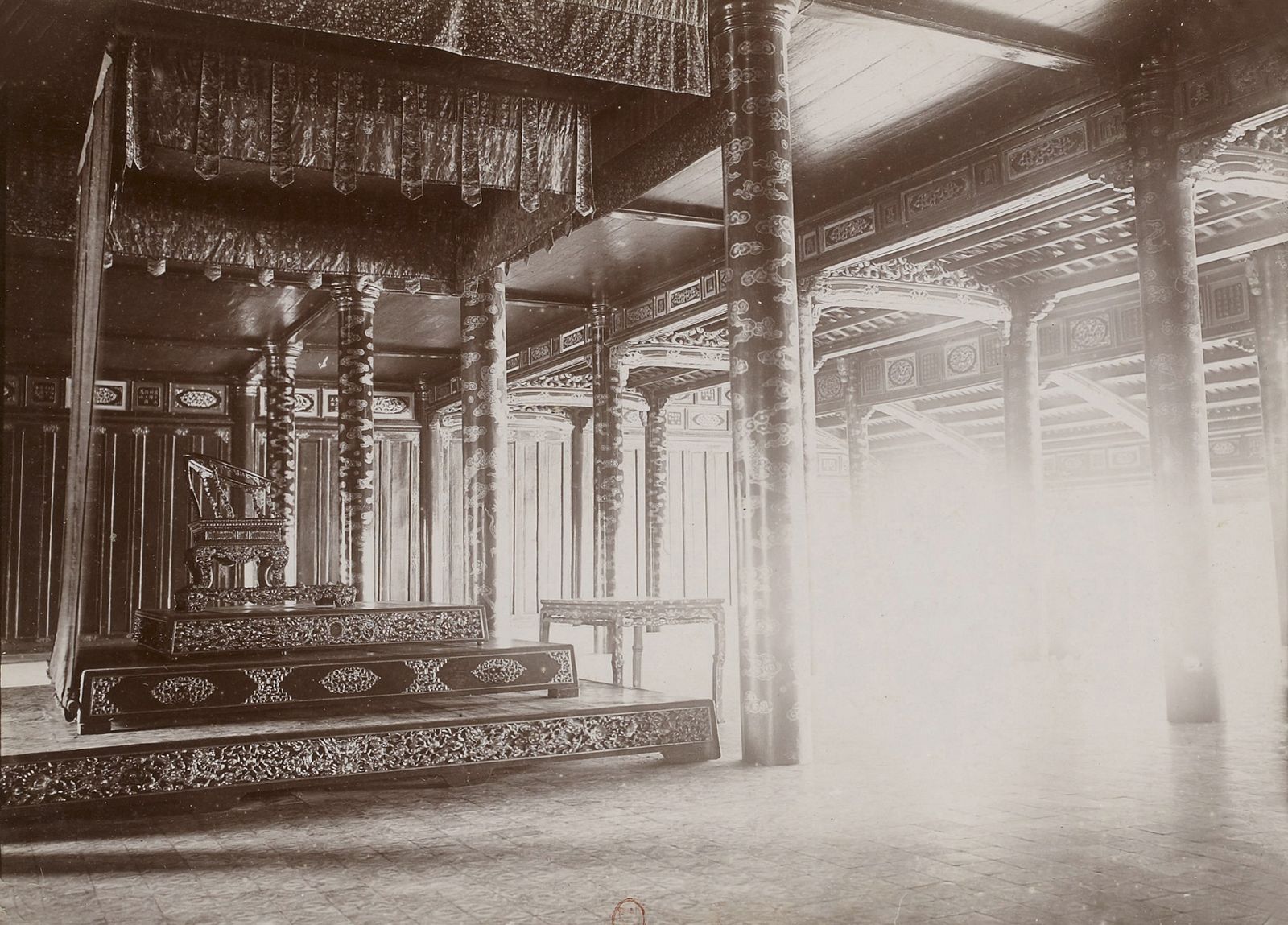 Trong loạt ảnh, Hoàng thành hiện lên cổ kính và trầm mặc, mà trong đó nhiếp ảnh gia kịp lưu lại vài khoảnh khắc như khi thị vệ hoàng cung và quân lính Pháp cùng chia sẻ một không gian của Điện Thái Hòa hay Lăng Tự Đức, hay cảnh lính canh dắt voi chiến đi trong Hoàng thành. Ngày nay, quần thể kiến trúc mang tính biểu tượng này thu hút hàng ngàn khách du lịch đến thăm Huế để chiêm ngưỡng và tưởng niệm lịch sử.