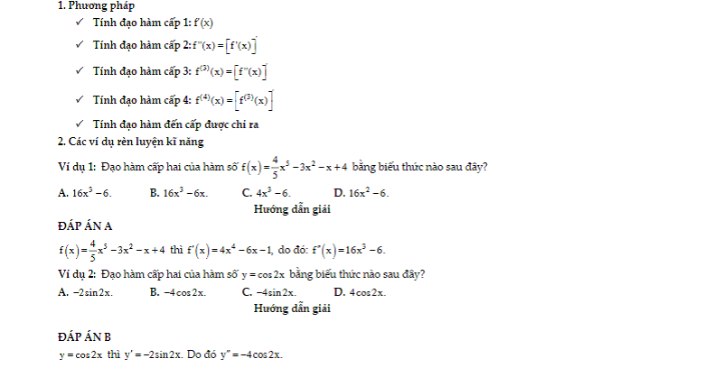 Luyện tập đa dạng dạng bài tập đạo hàm từ cơ bản đến nâng cao