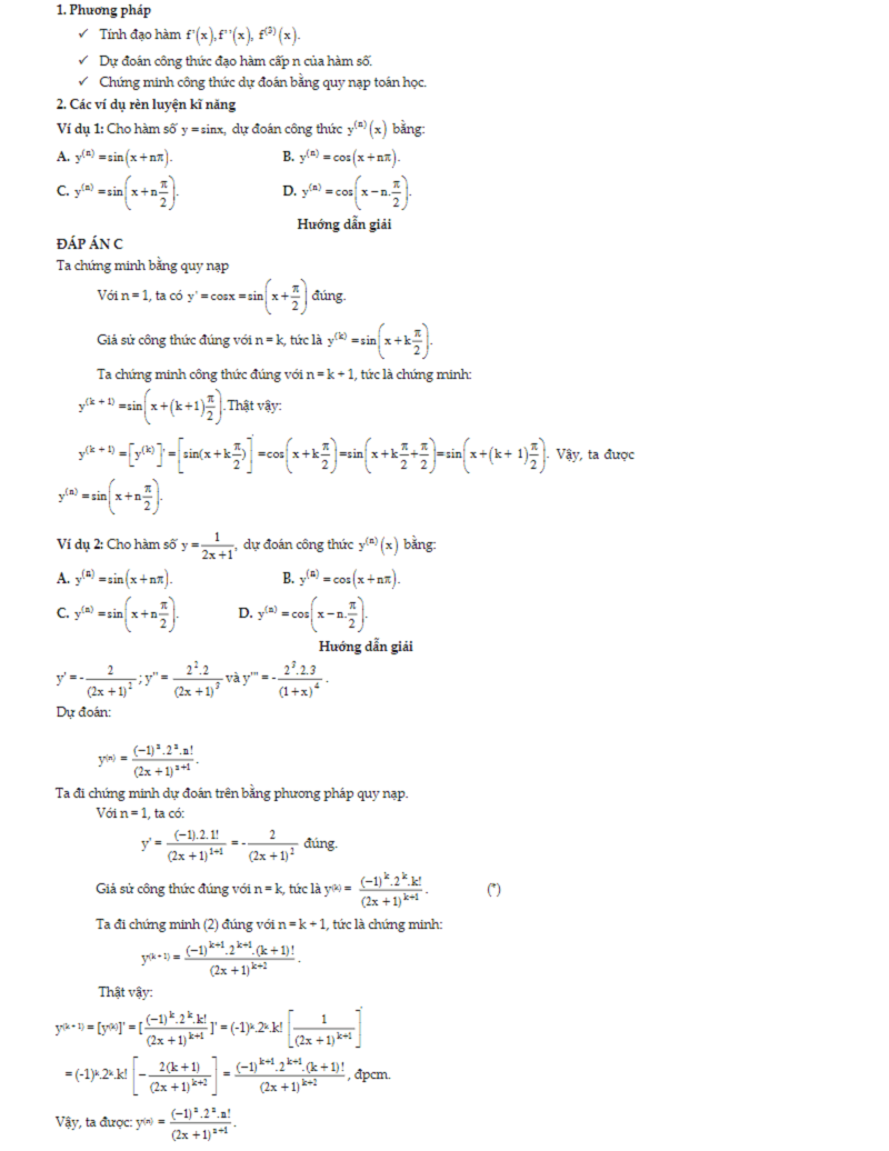 Dạng 2. Tìm đạo hàm cấp n của hàm số y = f(x).