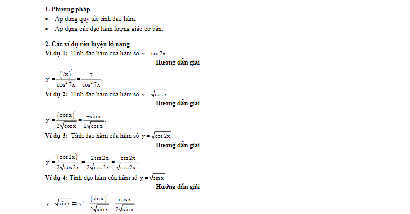 Dạng 1. Tính đạo hàm của các hàm số lượng giác.