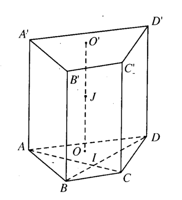 Ta có $R=sqrt{R_{d}^{2}+{{left( dfrac{h}{2} right)}^{2}}},$ trong đó $O$ là tâm đường tròn ngoại tiếp đáy thì ta có
