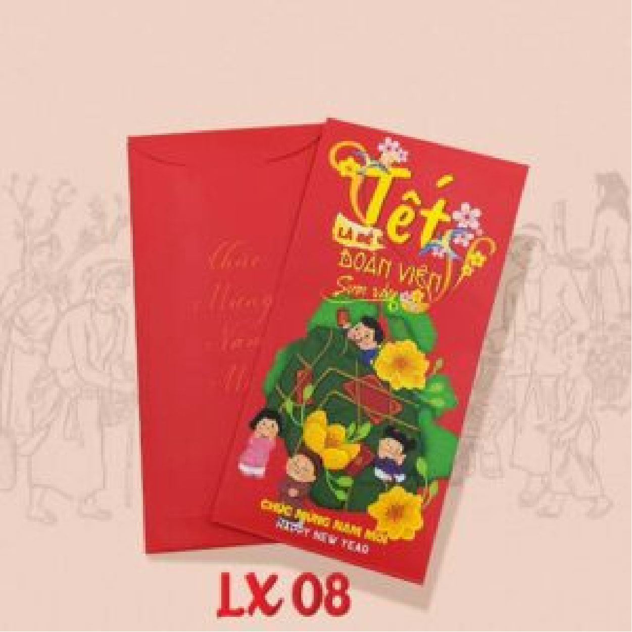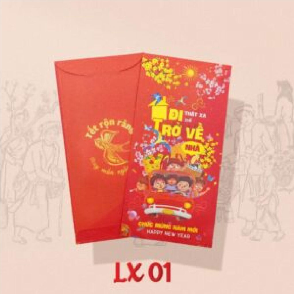 Bao lì xì LX01 “Đi Để Trở Về” mang thông điệp về sự đoàn tụ và tình yêu gia đình, nhấn mạnh giá trị của việc trở về nhà sau một năm dài xa cách. Nó gửi gắm lời chúc về sự sum họp và những khoảnh khắc hạnh phúc bên người thân trong dịp Tết.