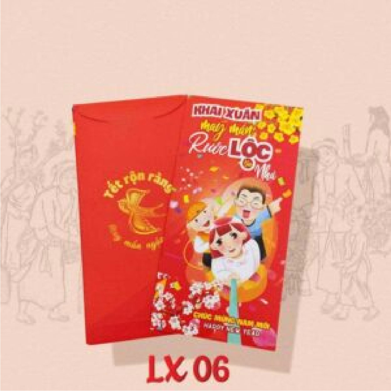 Chúng tôi có sẵn 1 mẫu bao lì xì đẹp mắt, đa dạng phong cách và họa tiết, phù hợp với nhiều sở thích và nhu cầu khác nhau. Mỗi mẫu bao lì xì đều được thiết kế với ý tưởng độc đáo, mang lại may mắn và tài lộc cho người nhận. ( 6 mẫu có sẵn đặt vị trí ép kim (Mã 2,3,4,5,7,12)