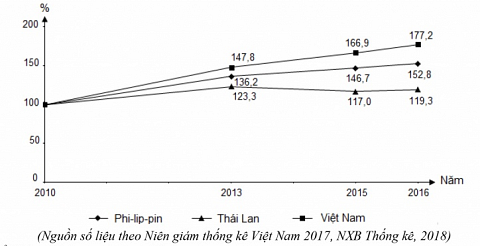 GDP của Phi líp pin, Thái Lan và Việt Nam giai đoạn 2010 – 2016
