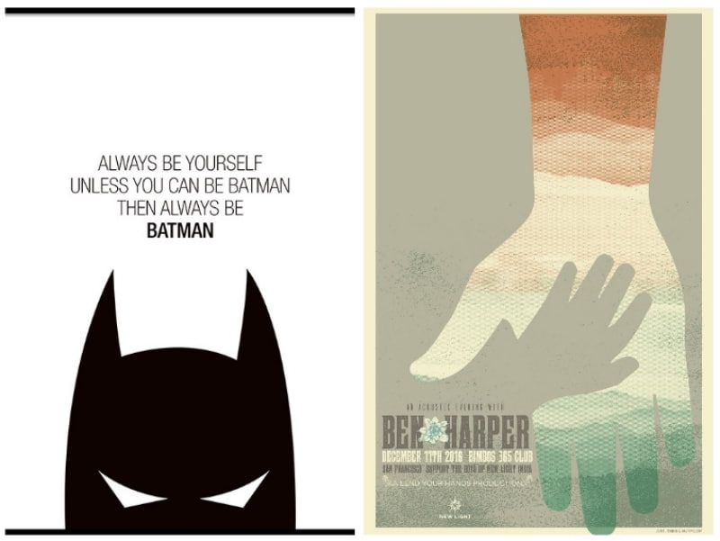 – Cân bằng không đối xứng: Phương pháp này khó hơn rất nhiều so với cân bằng đối xứng. Thường designer sẽ sắp xếp 1 số yếu tố có trọng lượng ảnh lớn ở một bên bản poster, bên đối diện sẽ dùng các yếu tố có trọng lượng ảnh nhỏ hơn.
