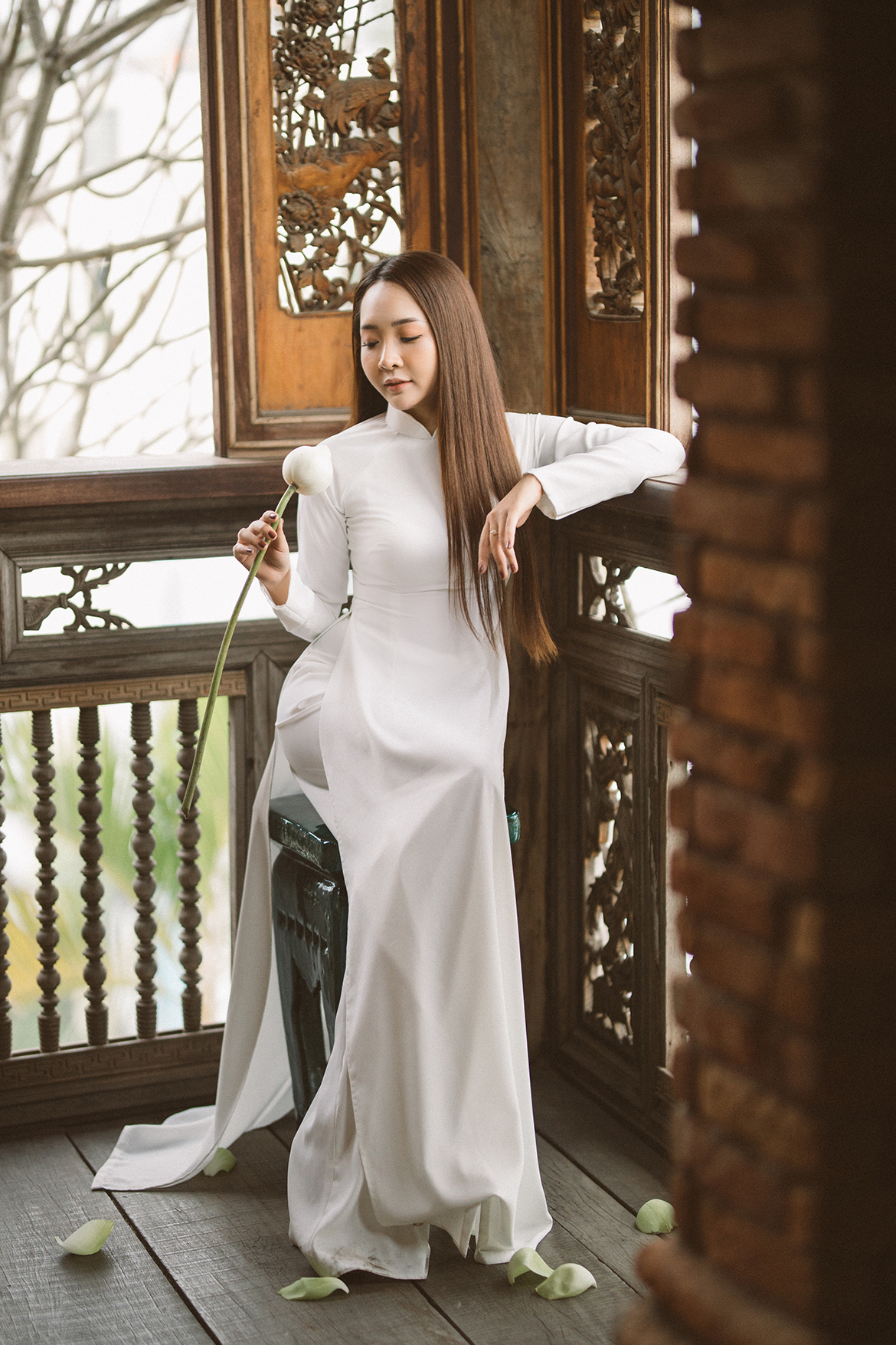 Cách tạo dáng chụp ảnh áo dài với mái tóc dài buông thả