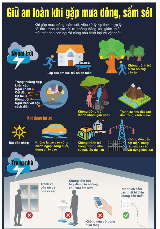 – Ở trong nhà khi trời mưa dông, lốc, sét.