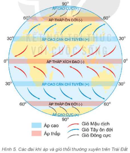 – Khí áp được phân bố trên Trái Đất thành các đai khí áp thấp và khí áp cao từ xích đạo về cực.