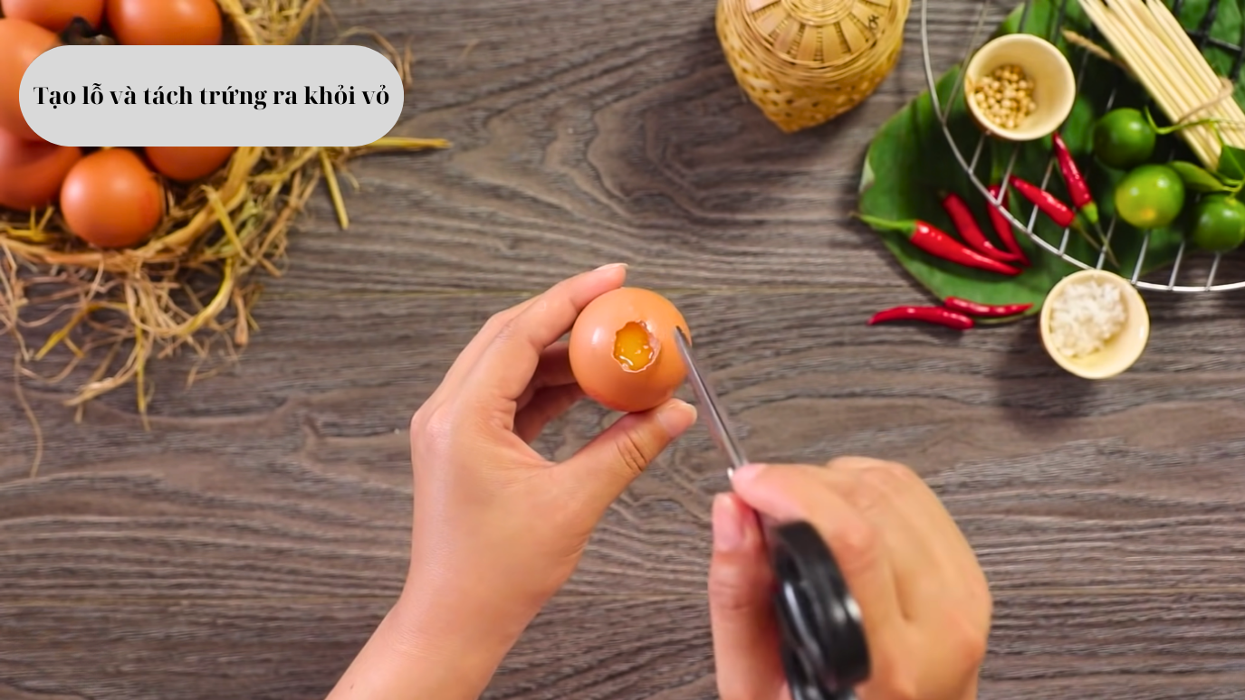 Bước 1: Tạo lỗ và tách trứng ra khỏi vỏ