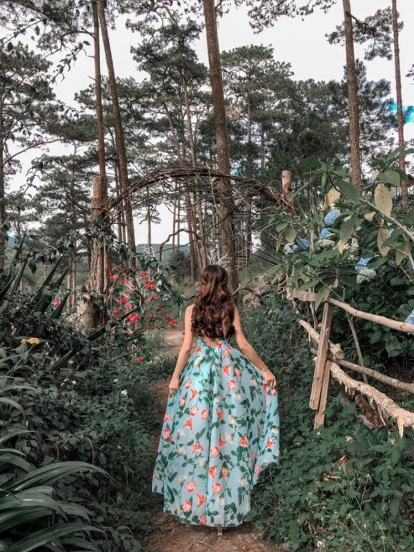 Bạn lựa chọn khu vực có hoa ở công viên như hoa giấy, hoa hồng,… để tạo dáng đơn giản. Đứng cạnh ngang tầm với cây hoa bạn đưa 1 tay lên cầm hờ nhẹ nhàng cành hoa, 1 tay đưa lên trước ngực rồi mắt nhìn về phía ống kính trông như một nàng thơ. Hay pose dáng đứng nghiêng người với camera, mặt hơi cúi xuống như đang tận hưởng hương thơm của những bông hoa đang khoe sắc. Với những bông hoa nhỏ, bạn có thể điểm xuyết cài lên tóc giúp bạn trông thật xinh xắn, tạo điểm nhấn cho bức hình.