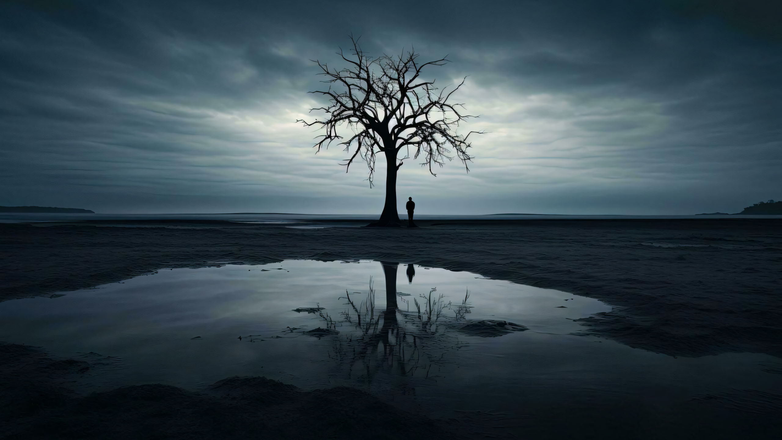 Ảnh phong cảnh buồn ngang thường là lựa chọn hàng đầu cho máy tính, ảnh bìa mạng xã hội hoặc website cá nhân. Kích thước rộng (2560×1440) cho phép bạn đắm chìm vào toàn cảnh từ vùng biển lặng sóng đến những dãy núi bị che khuất trong mây.