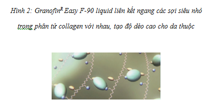 GranofinR Easy F-90 liquid tạo liên kết với cả 2 nhóm, nhờ vậy cho độ mềm dẻo cao ở cả 2 mặt da. Điều này làm cho da được thuộc với GranofinR Easy F-90 liquid mềm dẻo, chịu xé rách tốt (Hình 2).