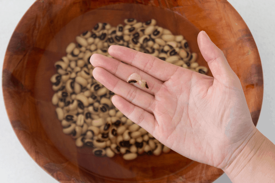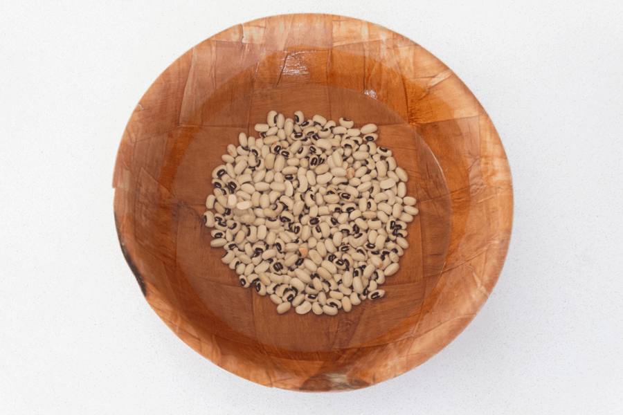 Soak the black eyed peas in 1 L (4 US cup) water with the baking powder for 3 hours.