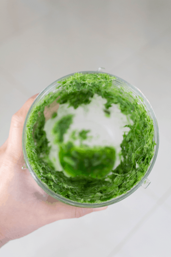Pour 1/4 US cup water into a blender with the cut pandan leaves and blitz on high for 1 minute.