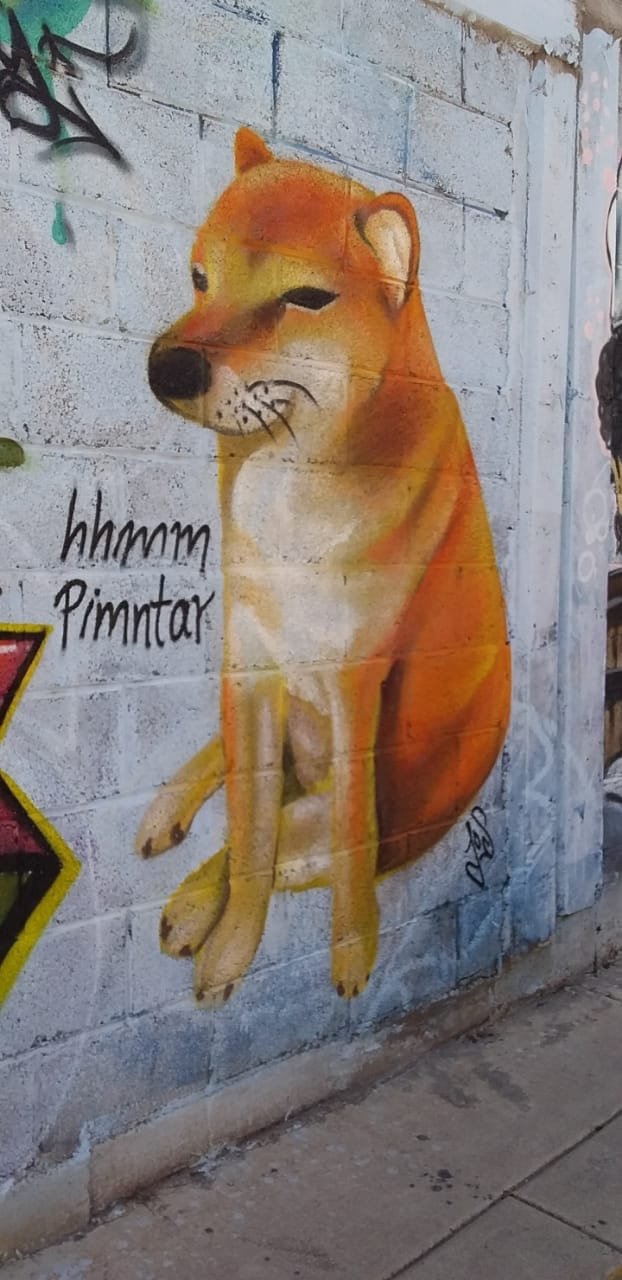 Cheems has even inspired artwork. it’s unknown where this mural below is painted though it’s by a Spanish-speaking artist.