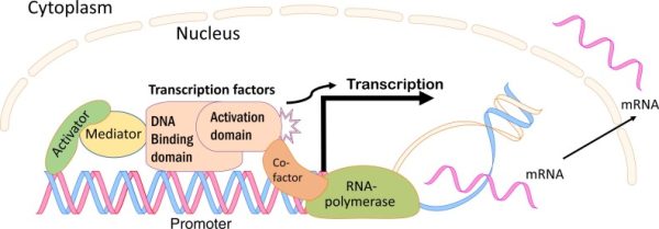 Các tín hiệu từ môi trường bên ngoài như hormone, cytokine, và các chất truyền tin khác, có thể kích hoạt các con đường tín hiệu nội bào. Sau đó dẫn đến việc kích thích hoặc ức chế các transcription factors và từ đó ảnh hưởng đến quá trình phiên mã.