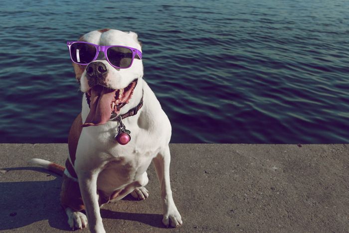Hình ảnh chó Pitbull đeo kính mạnh mẽ và cá tính