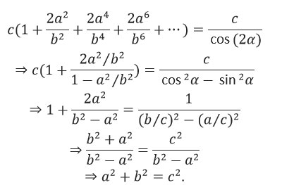 Mặc dù vậy, trong tất cả các lời giải này, không có cách chứng minh nào sử dụng công thức lượng giác. Bởi bản thân Pytago là một định lý cơ bản trong lượng giác, chứng minh nó bằng lượng giác sẽ khiến chúng ta rơi vào một cái bẫy của ngụy biện logic, gọi là tư duy tuần hoàn, khi chúng ta sử dụng chính Định lý Pitago để chứng minh Định lý Pitago.