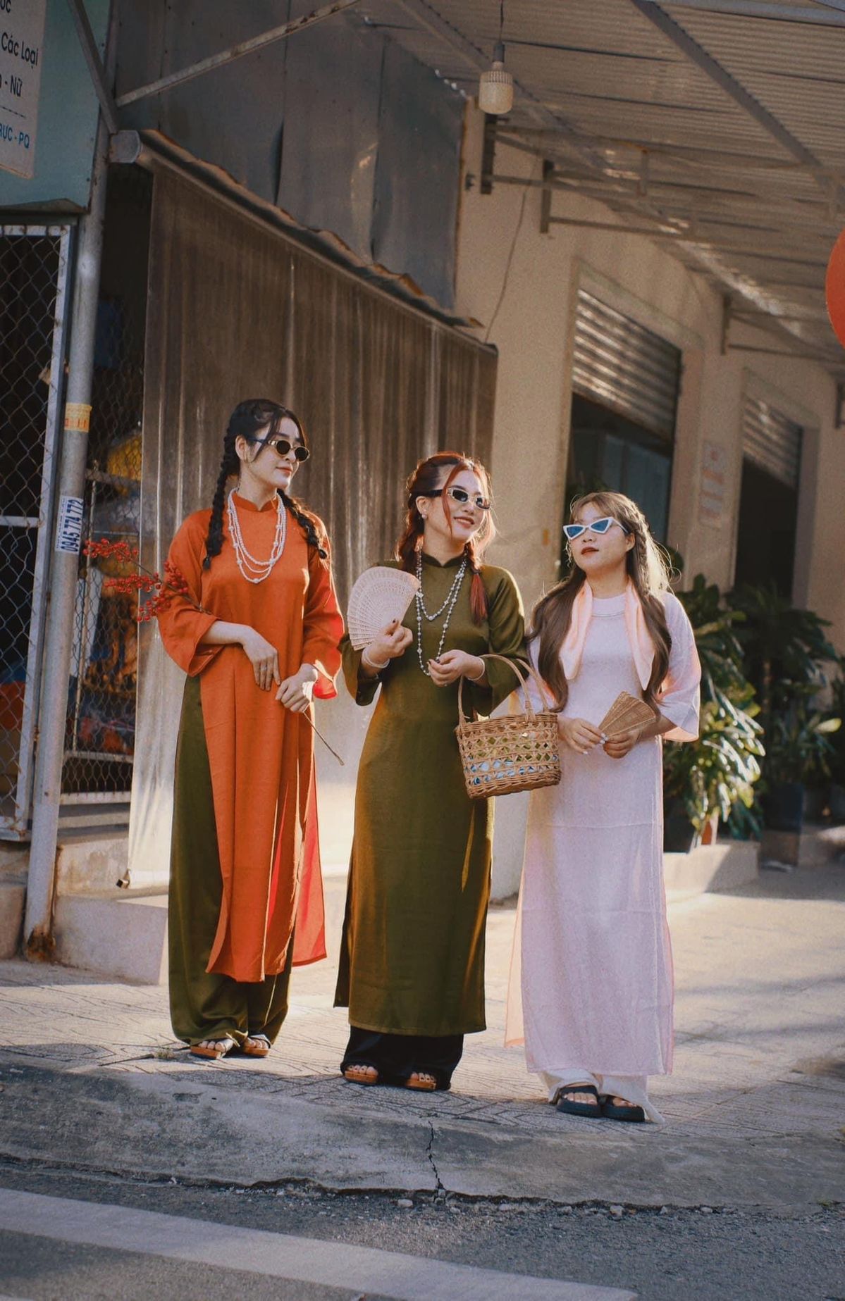 Chụp ảnh áo dài 3 người là cách tuyệt vời để lưu giữ khoảnh khắc gắn kết và tôn vinh nét đẹp truyền thống. Bạn có thể tạo dáng xếp hàng ngang, khoác tay nhau bước đi, hoặc đứng so le để tạo chiều sâu cho bức ảnh. Kết hợp thêm đạo cụ như hoa sen, nón lá hay quạt giấy sẽ giúp khung hình trở nên mềm mại và đầy chất nghệ thuật.