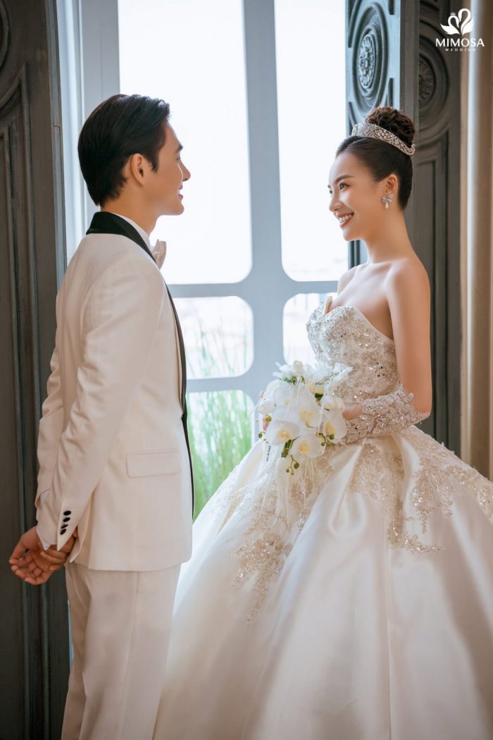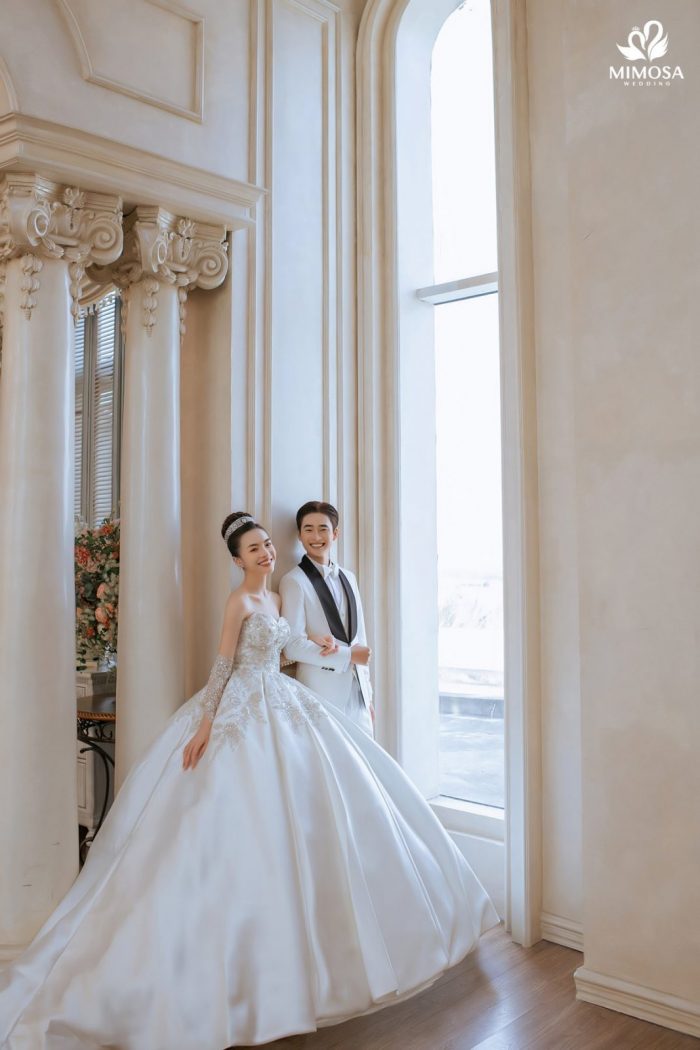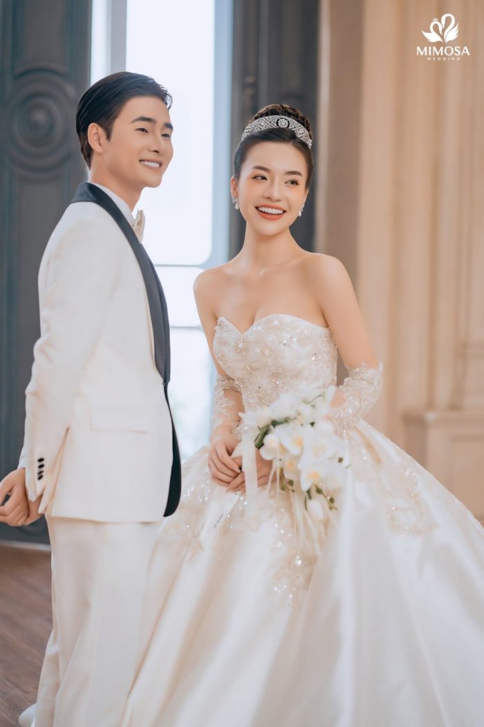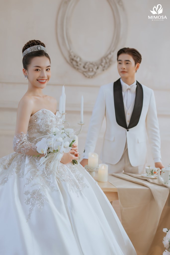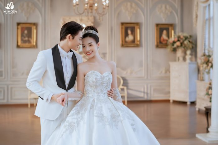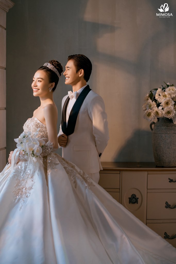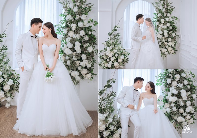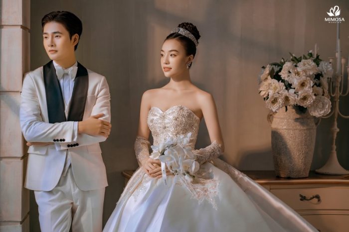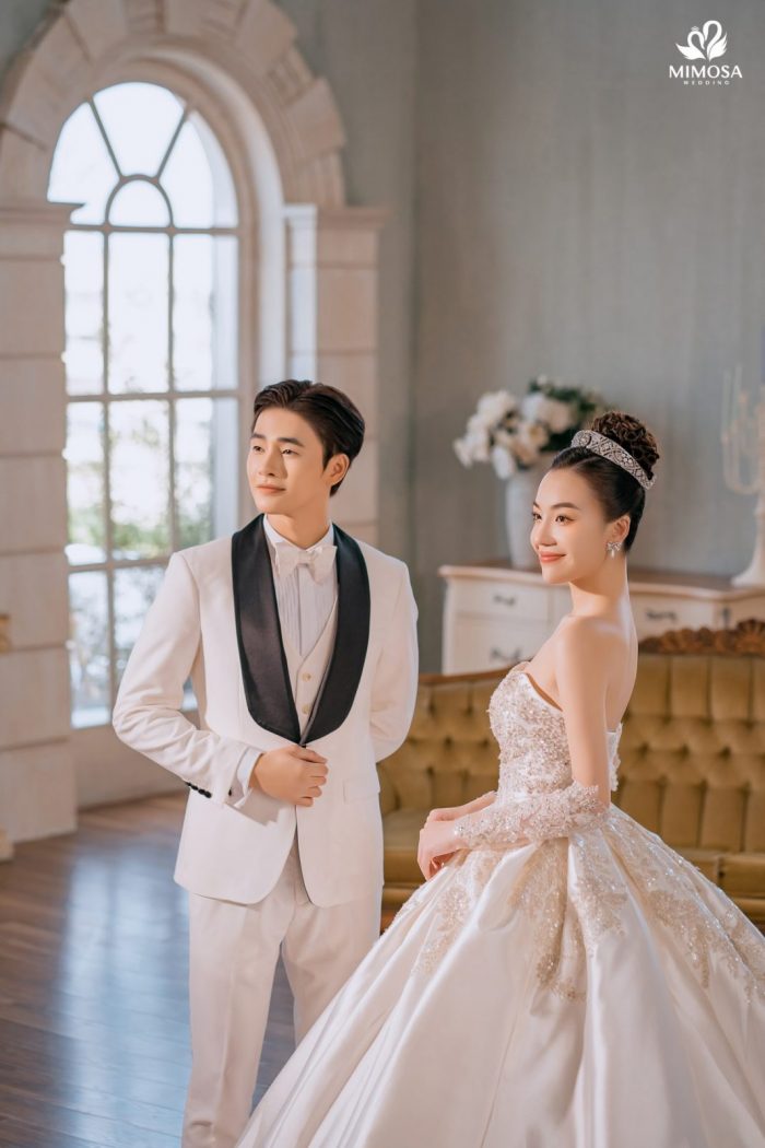 Với mức chi phí nhỉnh hơn, gói Hàn Quốc II tại Mimosa Wedding có giá khoảng 5.890.000 VNĐ, phù hợp với những cặp đôi mong muốn mở rộng số lượng ảnh, váy cưới và dịch vụ đi kèm. Gói này bổ sung thêm trang phục thứ hai cho cô dâu và chú rể, đồng thời đi kèm cả dịch vụ cho thuê váy cưới ngày cưới và áo dài ăn hỏi. Đây là lựa chọn lý tưởng dành cho những đôi uyên ương muốn sử dụng một combo trọn gói, tiết kiệm thời gian và đồng bộ phong cách từ chụp ảnh đến ngày cưới.