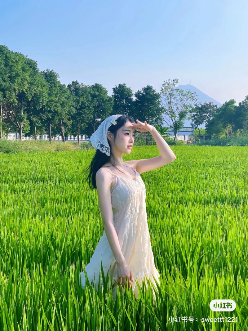Nếu bạn vẫn đang phân vân không biết chụp ảnh ở cánh đồng lúa theo concept gì thì có thể thử ngay concept nàng thơ với chiếc đầm 2 dây đáng yêu và tươi tắn này.Gam màu trắng là lựa chọn được yêu thích nhất. Tuy nhiên các bạn cũng có thể chọn những chiếc đầm 2 dây màu đỏ hay màu vàng cho bức hình của mình ghi điểm hơn.