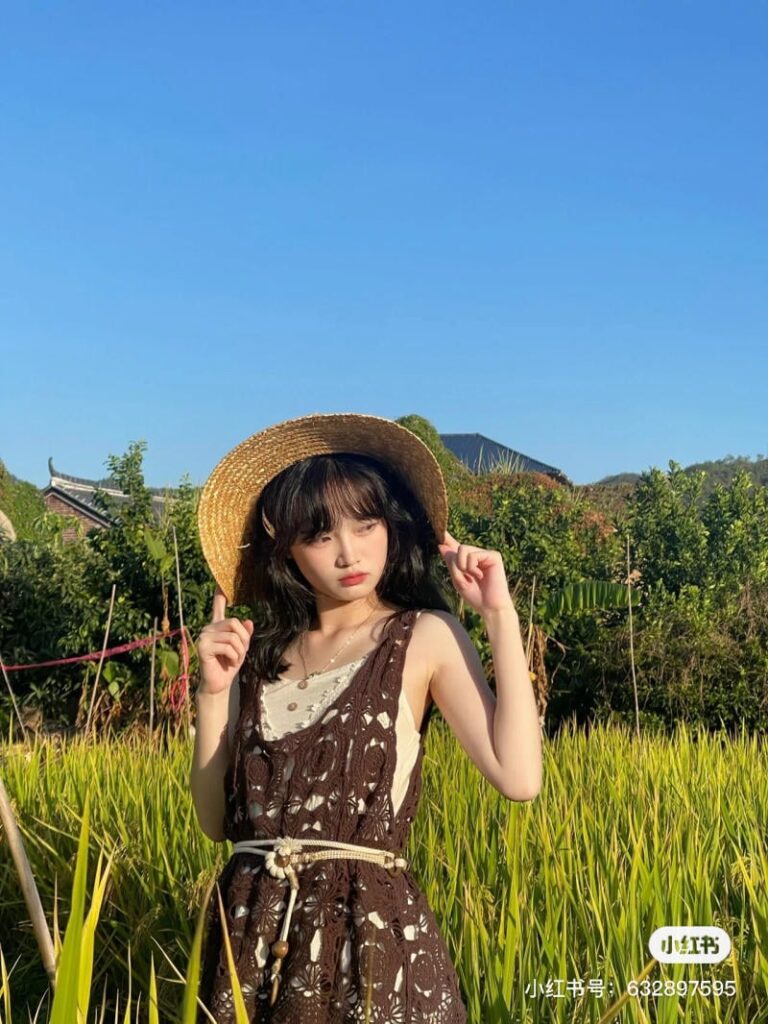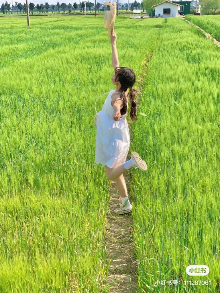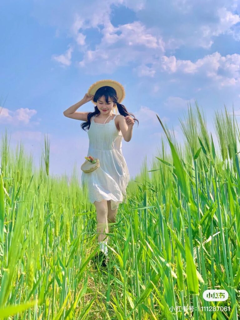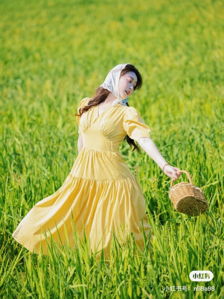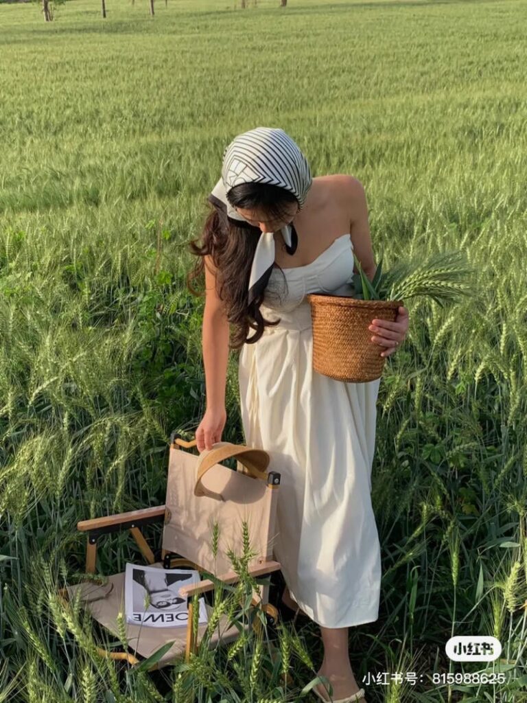 Rất nhiều cô nàng thích chụp ảnh cánh đồng lúa với style sang chảnh. Vậy thì một chiếc đầm cúp ngực màu trắng sẽ là item không thể thiếu.Thêm khăn lụa, kính râm và một chiếc túi tote cói kẹp nách… Đừng quên mang thêm cả những cuốn tạp chí hay những đạo cụ khác để giúp bạn tạo dáng bớt gượng gạo nhé.