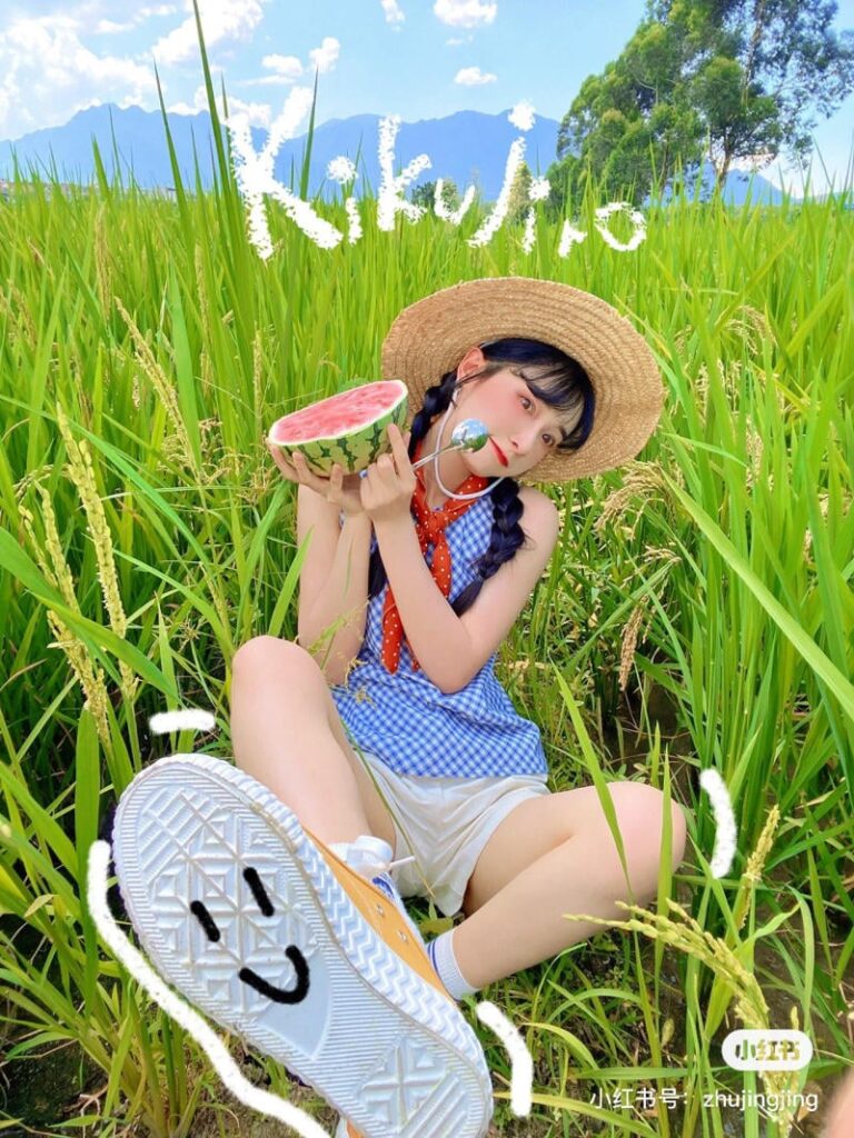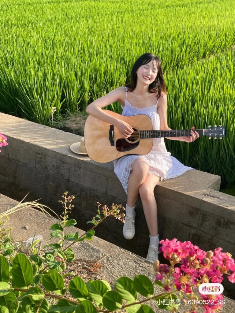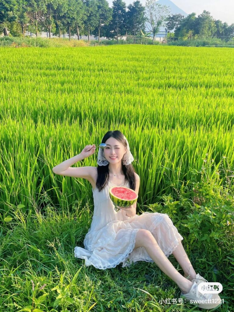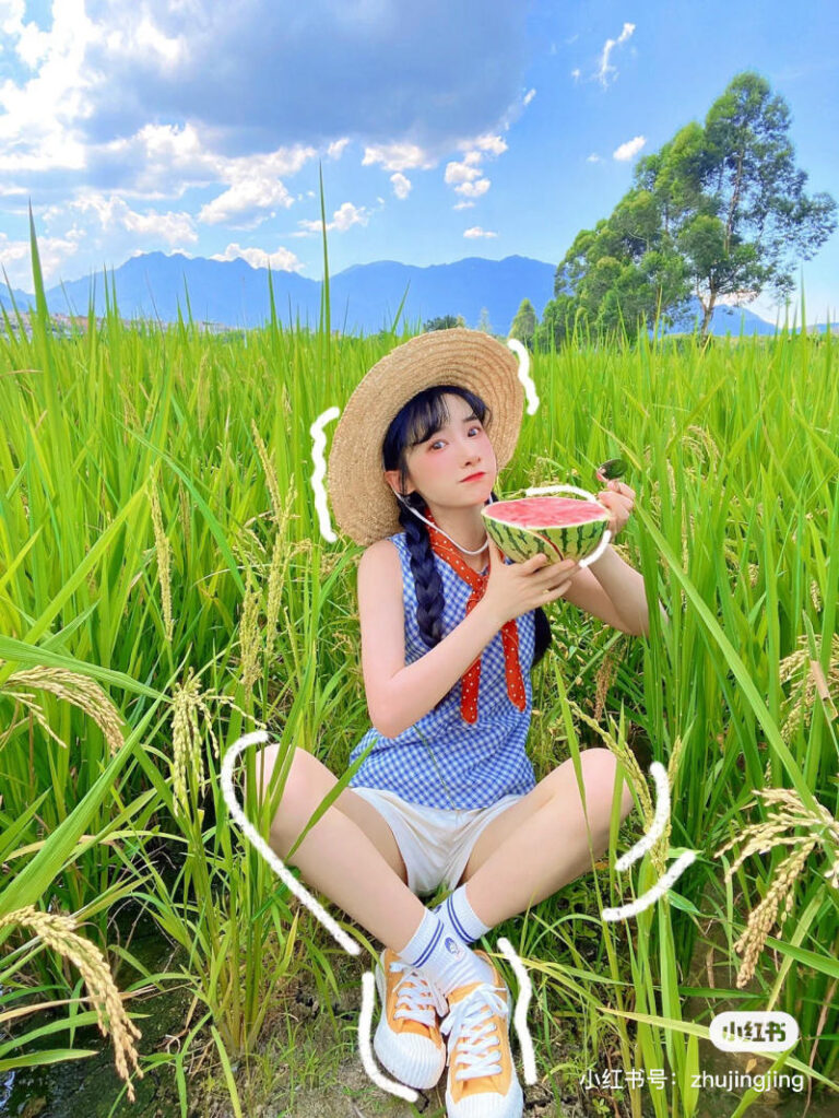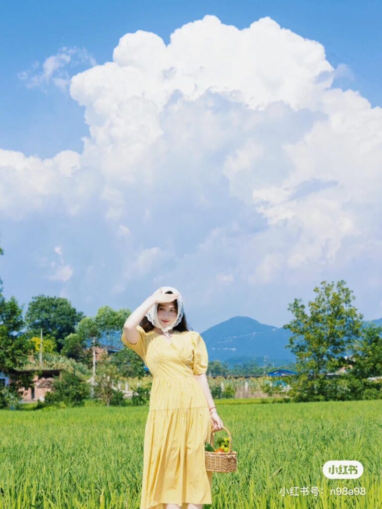 Rất nhiều cô nàng thích chụp ảnh cánh đồng lúa với style sang chảnh. Vậy thì một chiếc đầm cúp ngực màu trắng sẽ là item không thể thiếu.Thêm khăn lụa, kính râm và một chiếc túi tote cói kẹp nách… Đừng quên mang thêm cả những cuốn tạp chí hay những đạo cụ khác để giúp bạn tạo dáng bớt gượng gạo nhé.