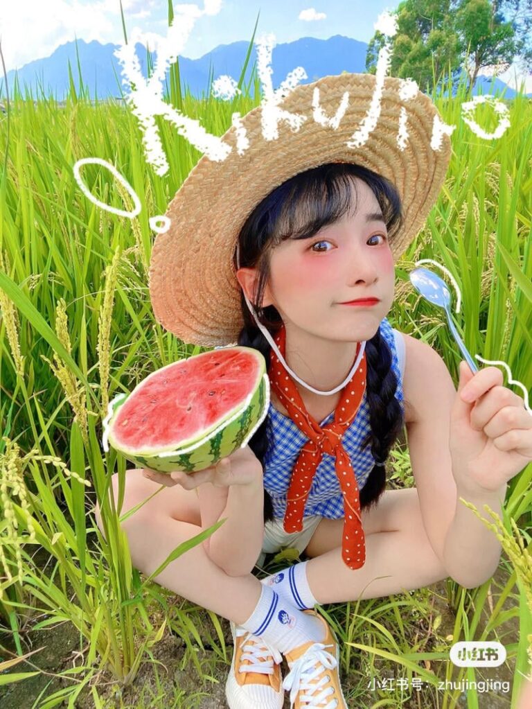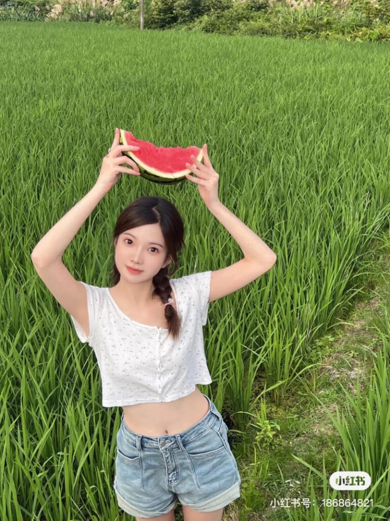 Bộ ảnh chụp hình cùng cánh đồng lúa theo phong cách thoải mái, cá tính thì chị em có thể mặc set áo phông và quần short. Đây cũng là một cách kết hợp hay và được nhiều bạn trẻ chọn lựa. Những chiếc quần shrort jean kết hợp cùng áo phông đơn giản, ai cũng có thể mặc được. Thêm một chiếc mũ rộng vành bằng cói hay một đôi sandals là bạn có thể bắt đầu tạo dáng được rồi nè.