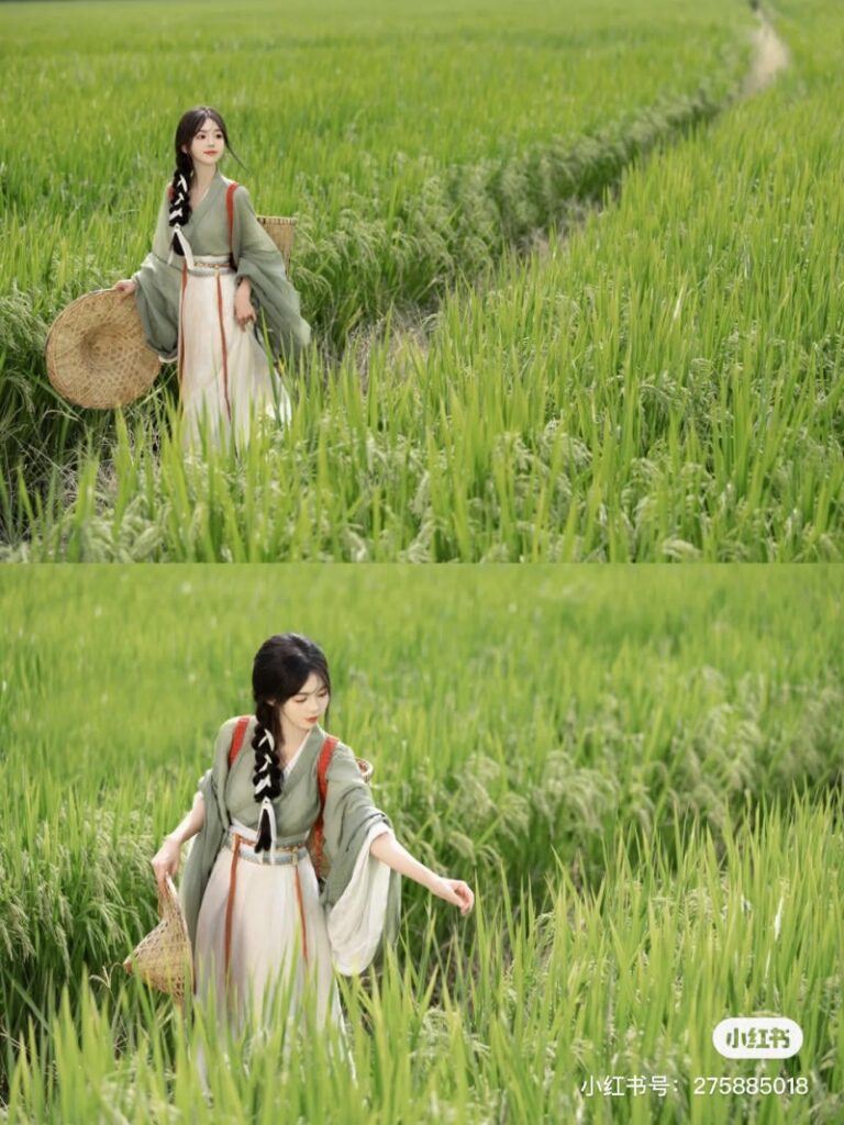 Những bộ đồ cổ trang lại mang nét đẹp khác. Nếu bạn đang muốn có một bộ ảnh cánh đồng lúa khác biệt với mọi người trên mạng xã hội thì có thể chọn outfit này.